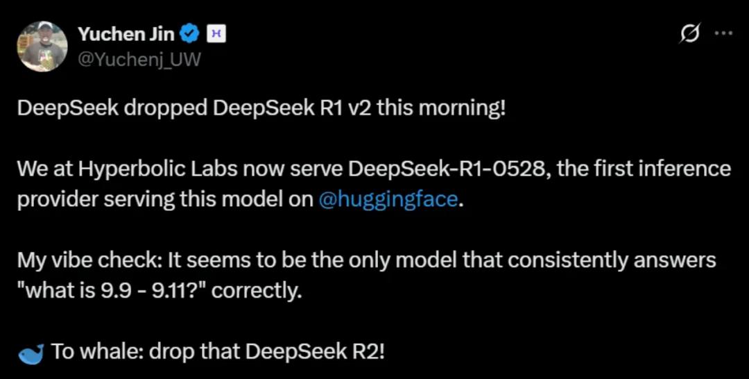 昨日凌晨,DeepSeek再度有了新动作——DeepSeek-R1-0528模型于Hugging Face平台正式开源。
