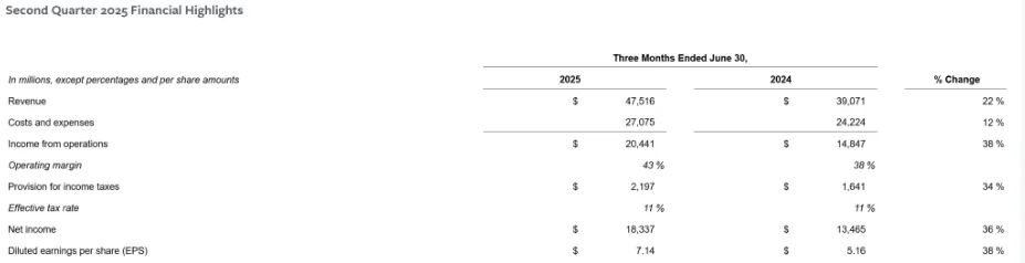 每股收益:7.14美元,远高于预期5.92美元,同比增长38%。