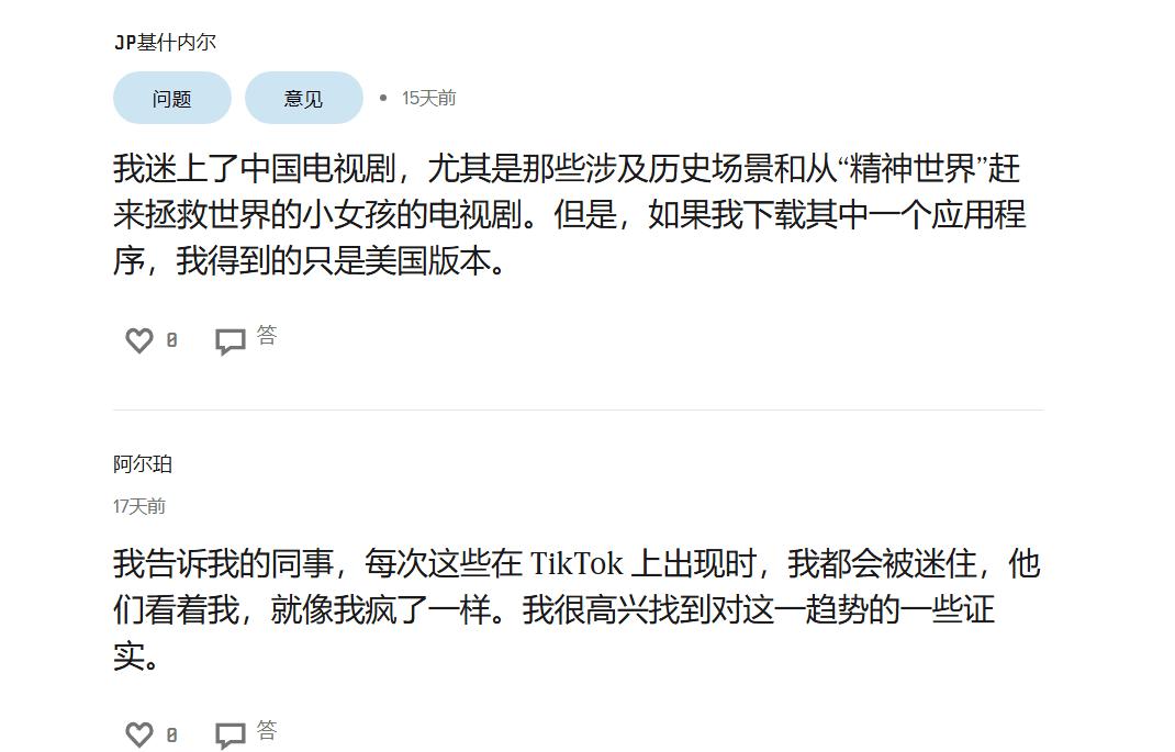 美国《连线》杂志中关于中国短剧风靡北美的报道下,读者的评论
