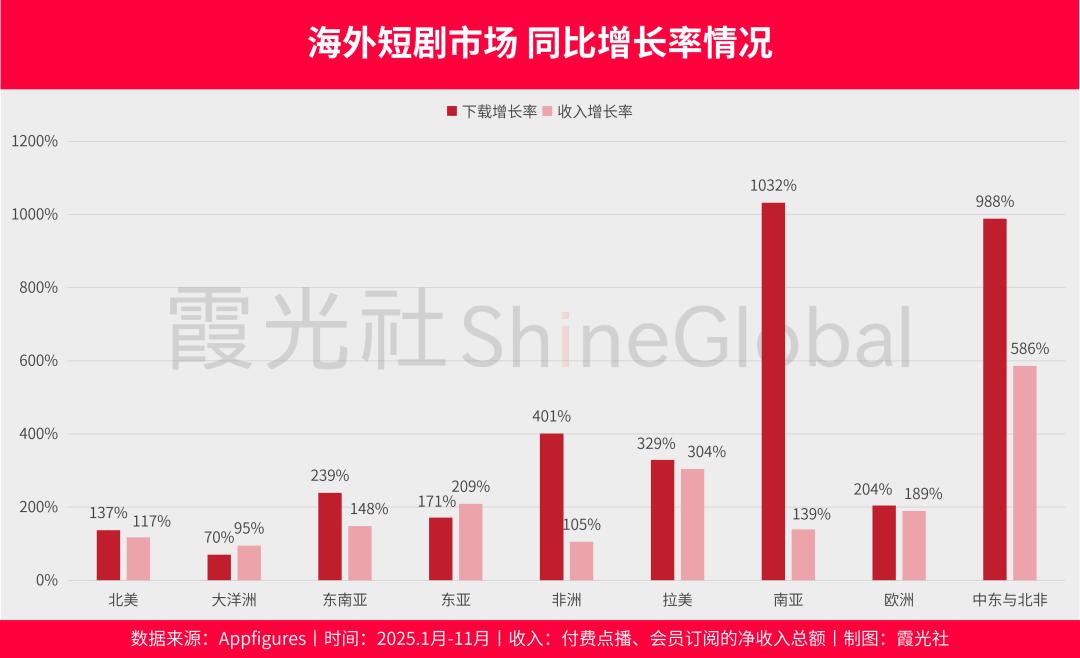 不过,赛道中也浮现出部分新机会点:例如深耕YouTube渠道的短剧运营厂商,年利润已达千万美元级别;东南亚、拉美等新兴市场的付费潜力被逐步挖掘,成为中小玩家的突围方向。邓先耀预判,未来行业将形成“头部厂商攻坚高净值市场、中小玩家深耕中长尾区域”的格局,而本土化内容供给不足,仍是全行业亟待突破的核心痛点。