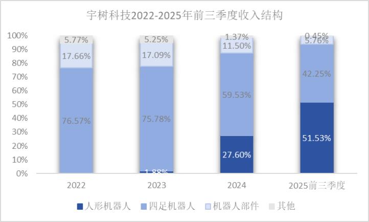 宇树的人形机器人业务开始于2023年8月,2024年成规模,在2025年春晚的《秧bot》表演后,收入爆发式增长。2025年前三季度,人形机器人售卖收入5.95亿,是2024年全年的5倍以上。