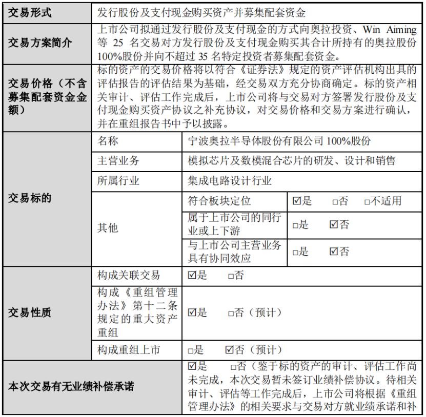 格隆汇获悉,9月10日晚,上市公司双成药业(002693.SZ)发布了《海南双成药业股份有限公司发行股份及支付现金购买资产并募集配套资金暨关联交易预案》(以下简称“收购预案”),拟以发行股份及支付现金的方式收购宁波奥拉半导体股份有限公司(以下简称“奥拉半导体”)100%的股份。