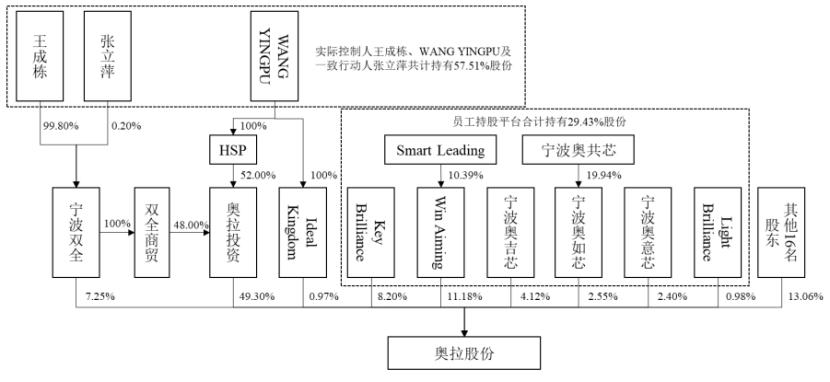 截至并购预案签署日,王成栋和WANG YINGPU父子二人通过直接和间接持股的方式,合计控制奥拉半导体57.51%的股份。