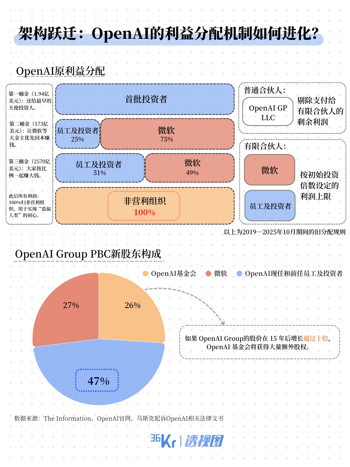 这一里程碑式的变革,为OpenAI未来的融资和IPO扫清了关键障碍。通过简化股权结构、明确投资者权益,OpenAI彻底解除了“利润上限”模式的束缚,使股东能按持股比例分享公司成长红利,标志着其向成熟商业实体的巨大飞跃。具体来看,本次股改OpenAI有两大变化:
