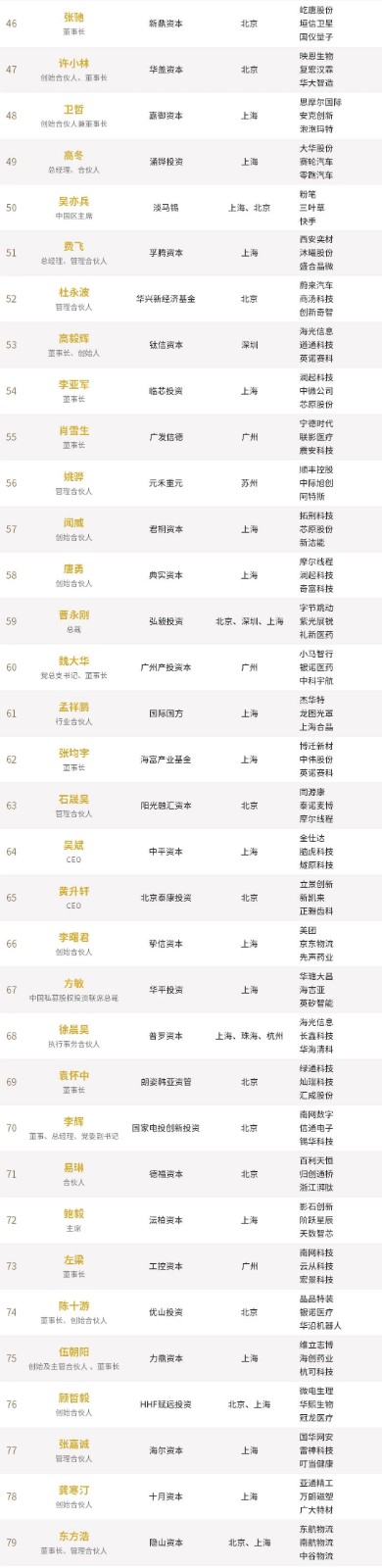**最终结果按投资人及其所在机构合计退出回报金额由高到低进行排序。