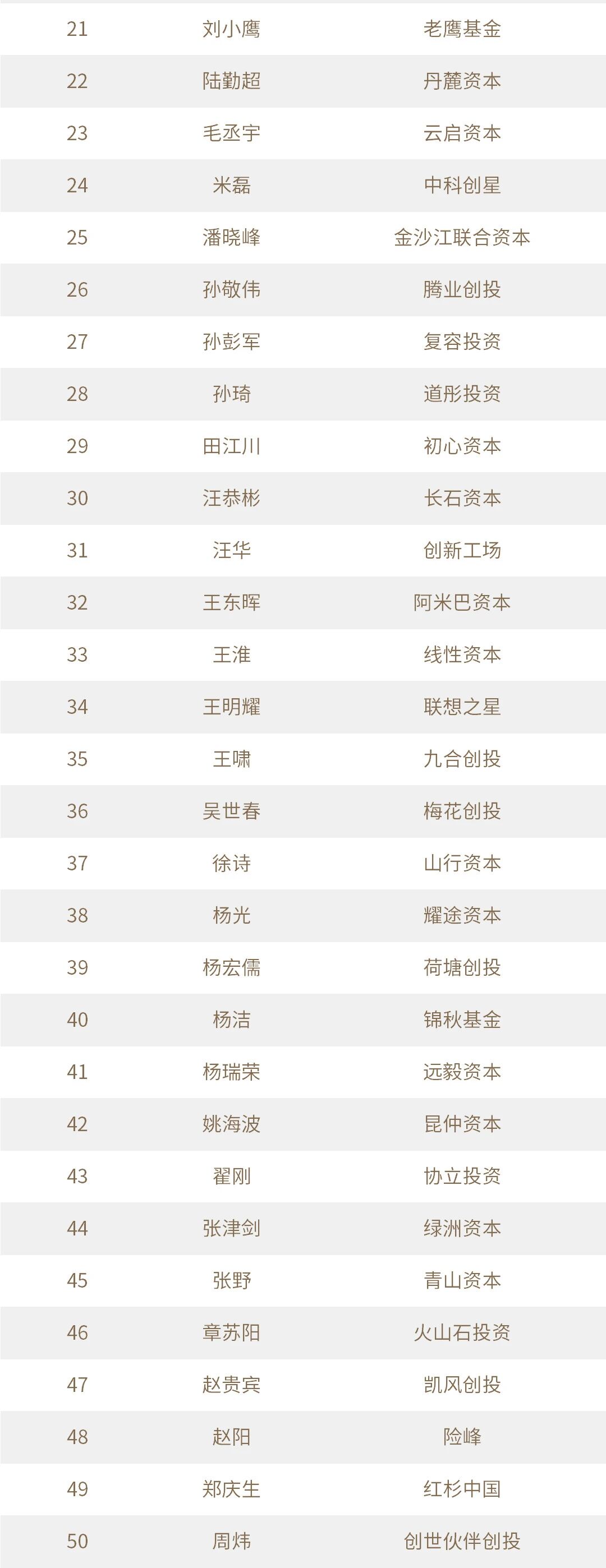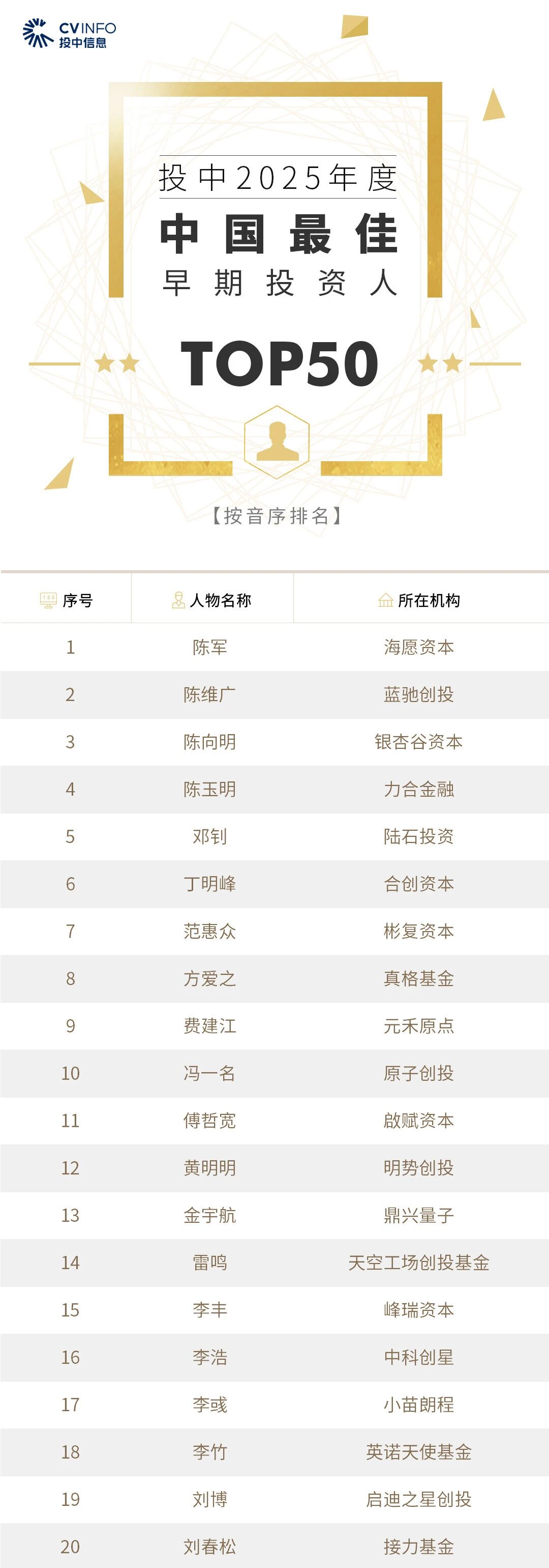 投中2025年度中国最佳早期投资人TOP50【按音序排名】