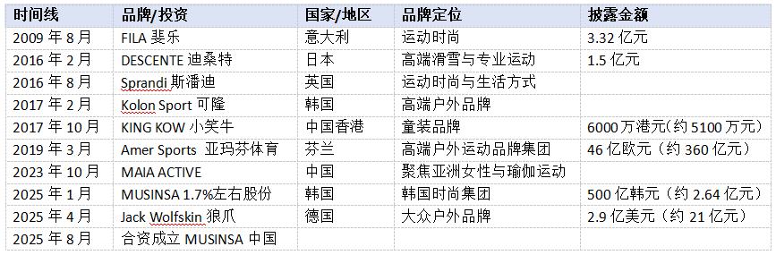 2025年4月,安踏体育以2.9亿美元收购了德国户外品牌狼爪。数月后,公司又宣布与韩国时尚集团MUSINSA共同成立合资公司MUSINSA中国。且进入2026年以来,PUMA彪马的收购传闻还在持续发酵。