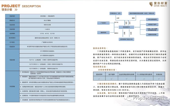 根据投资者所提供的另一份项目资料,该项目又被描述为一只私募基金:壹彤财富——财富通一号,管理人:壹彤财富投资基金管理(北京)有限公司,基金投向:专项用于哈尔滨壹彤房地产经纪公司二手房垫资业务流向资金补充。
