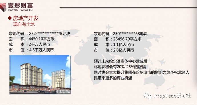 其中,房地产经纪截止去年4月店面总数217家,日均实收70余万元,哈市占有率达35%;房地产开发上,现自有土地至少两个地块,总计超3万平米;矿山经有相关部门勘测总储量4000余万吨,日均销售矿山原石4000吨左右;2017年出品三部影视作品;餐饮营业面积超3500平米,日均营业额8-8.5万元。