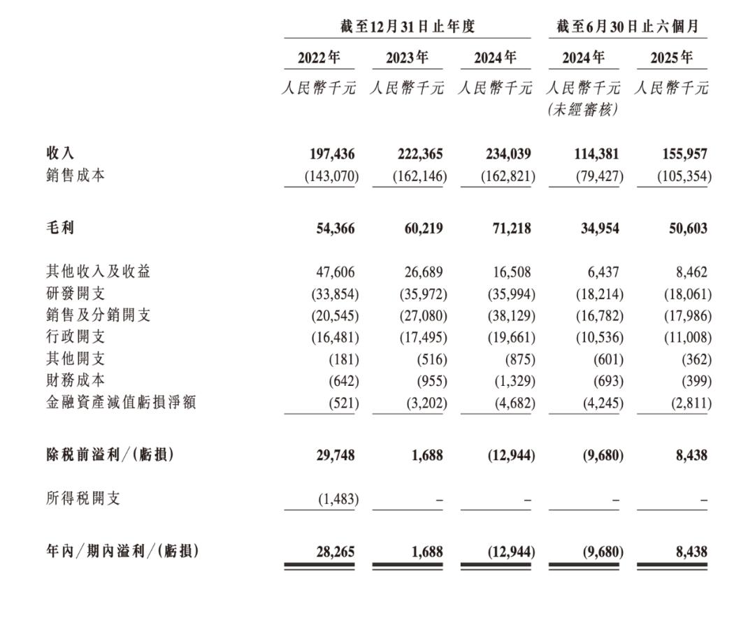 2022-2024年及今年上半年(下称:报告期),卡诺普的收入分别约1.97亿、2.22亿、2.34亿、1.56亿元;毛利分别约5436.6万、6021.9万、7121.8万、5060.3万元,毛利率分别为27.5%、27.1%、30.4%、32.4%;净利润分别约2826.5万、168.8万、-1294.4万、843.8万元。