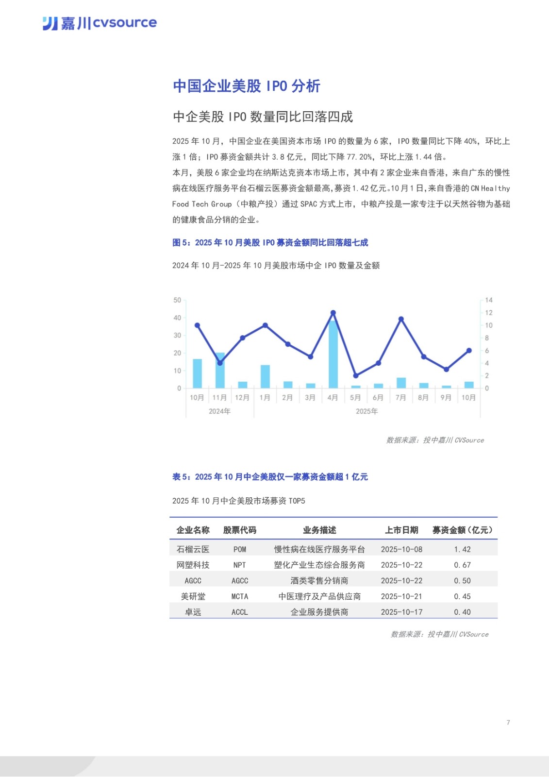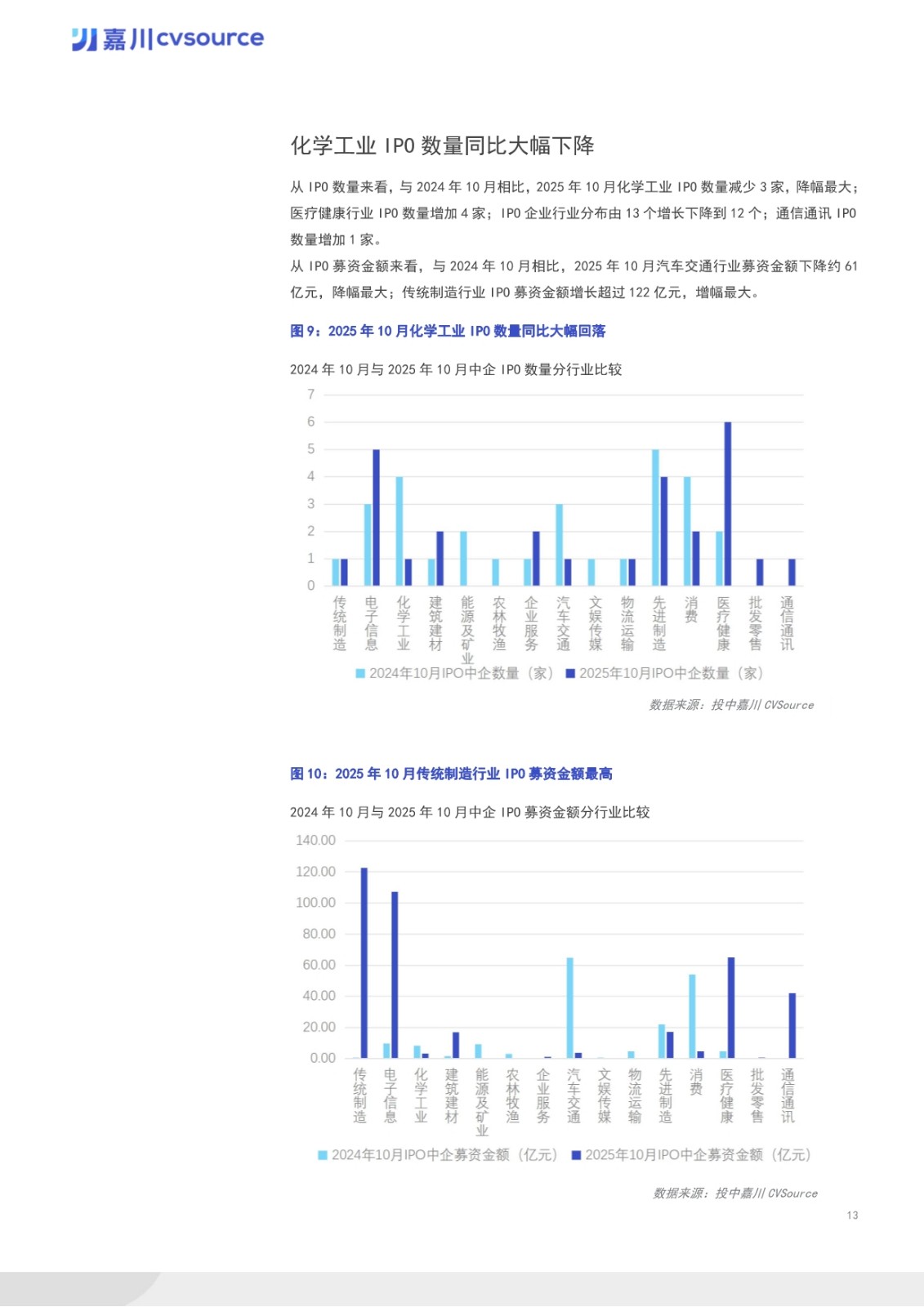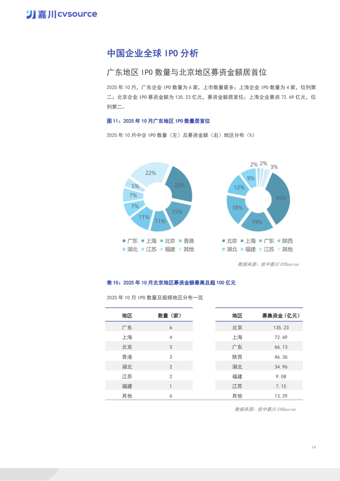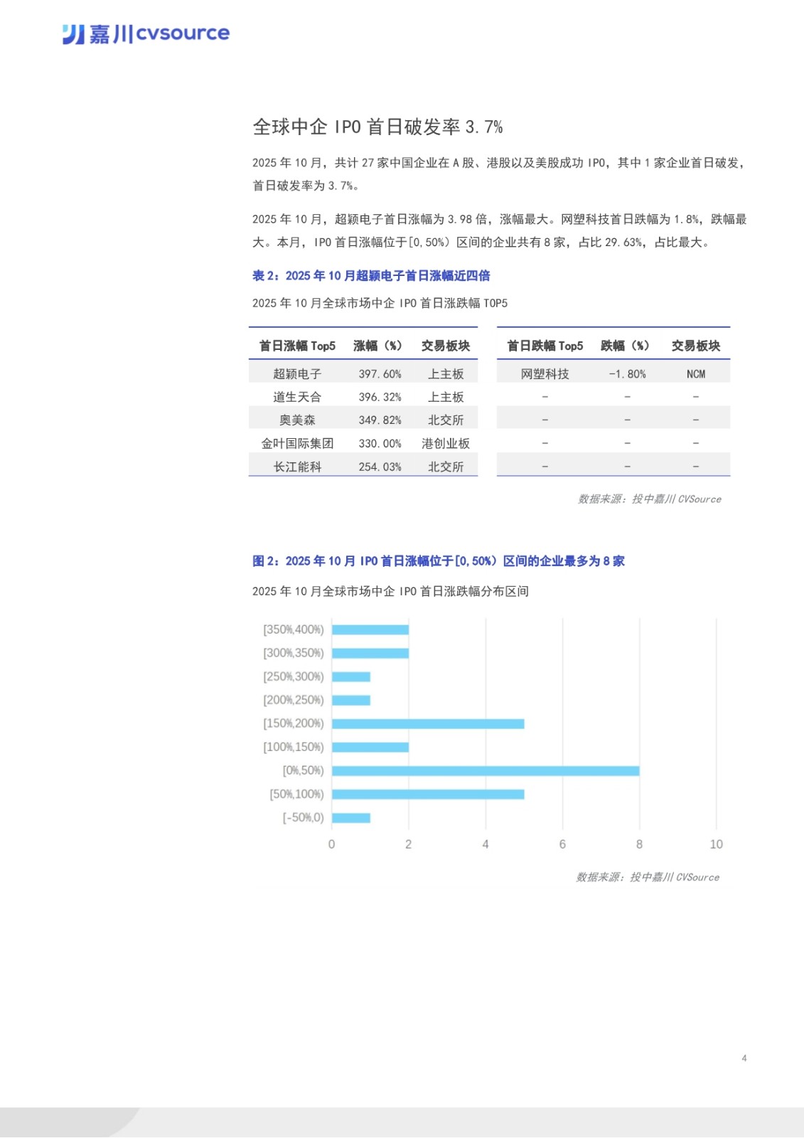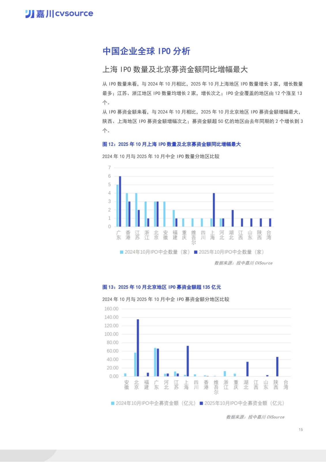 2025年10月,共计27家中国企业在A股、港股、美股成功IPO,合计募资385亿元。A股、港股、美股IPO募资金额环比回落近三成,港股与美股IPO数量环比上涨。VC/PE机构IPO渗透率为59.26%。